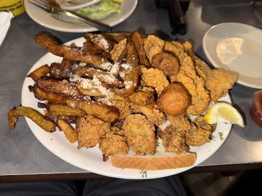 Second visit. Excellent service. Had fried catfish, which were very crispy and three large pieces. The mac and cheese was ok. Hush puppies were cold, not crispy and tough to eat. Better half had redfish poor boy, which was huge. He couldn't eat it all. Had sweet potatoe fries as his side, and it was a big dish. Will go again to try some other items. Tartar sauce and ranch dressing were too runny. Would not adhere to what I was eating. Prefer thicker sauces and dressings.